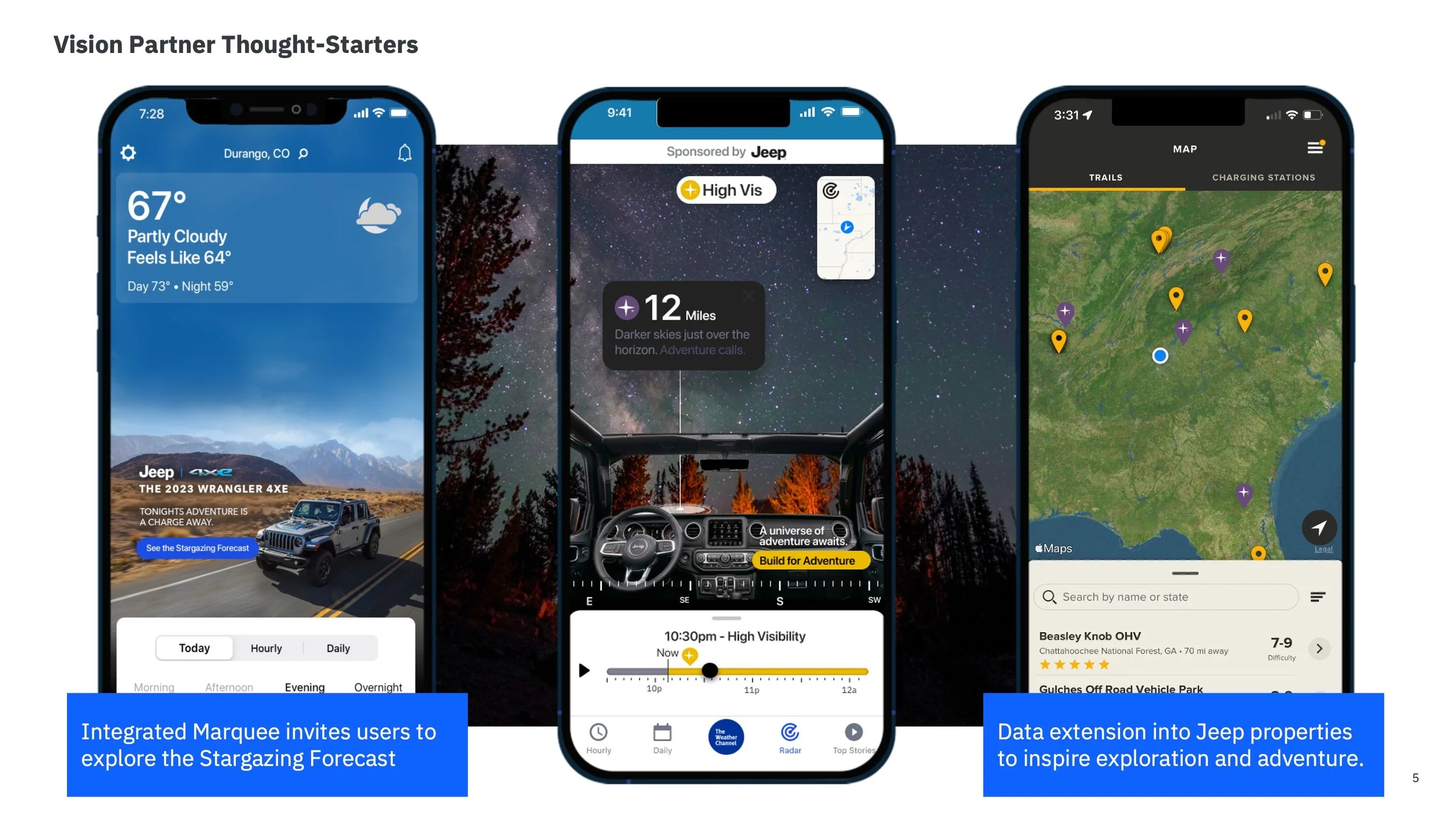 Or suggestions for targeted Jeep owners or auto purchase intenders are provided forecasted recommendations for optimal star-gazing.