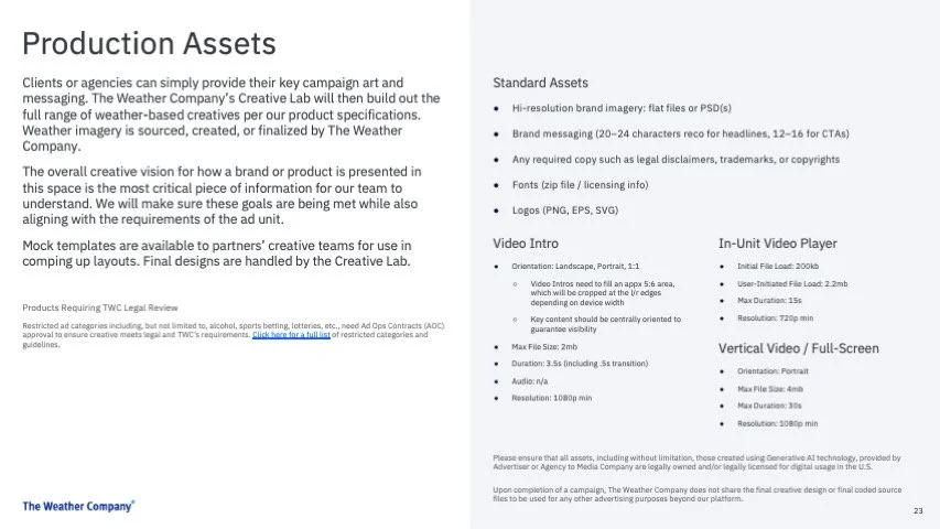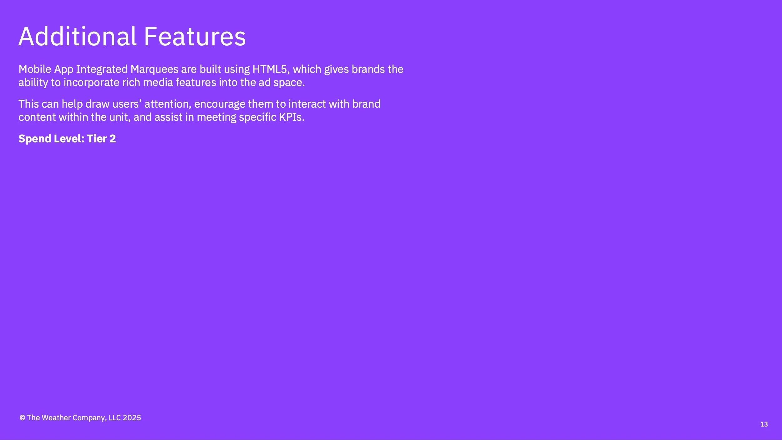 Features: HTML5, Interactive, Animation, e-Commerce, Video, Location, Weather, and 1st-Party Data.